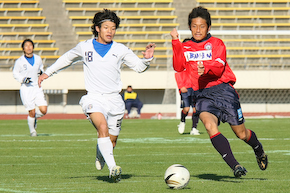 一方、バンディオンセ加古川は、安定性を感じさせるものの確実性を欠き、No.7 MF 濱岡のフリーキック、コーナーキックからのチャンスをいずれも逃しペースを掴めぬまま後半に流れ込む。