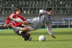 闘志が激突、たびたびの注意が促される混戦模様が続く中、ゴールを割ることができぬまま勝負を後半に持ち越すこととなる。